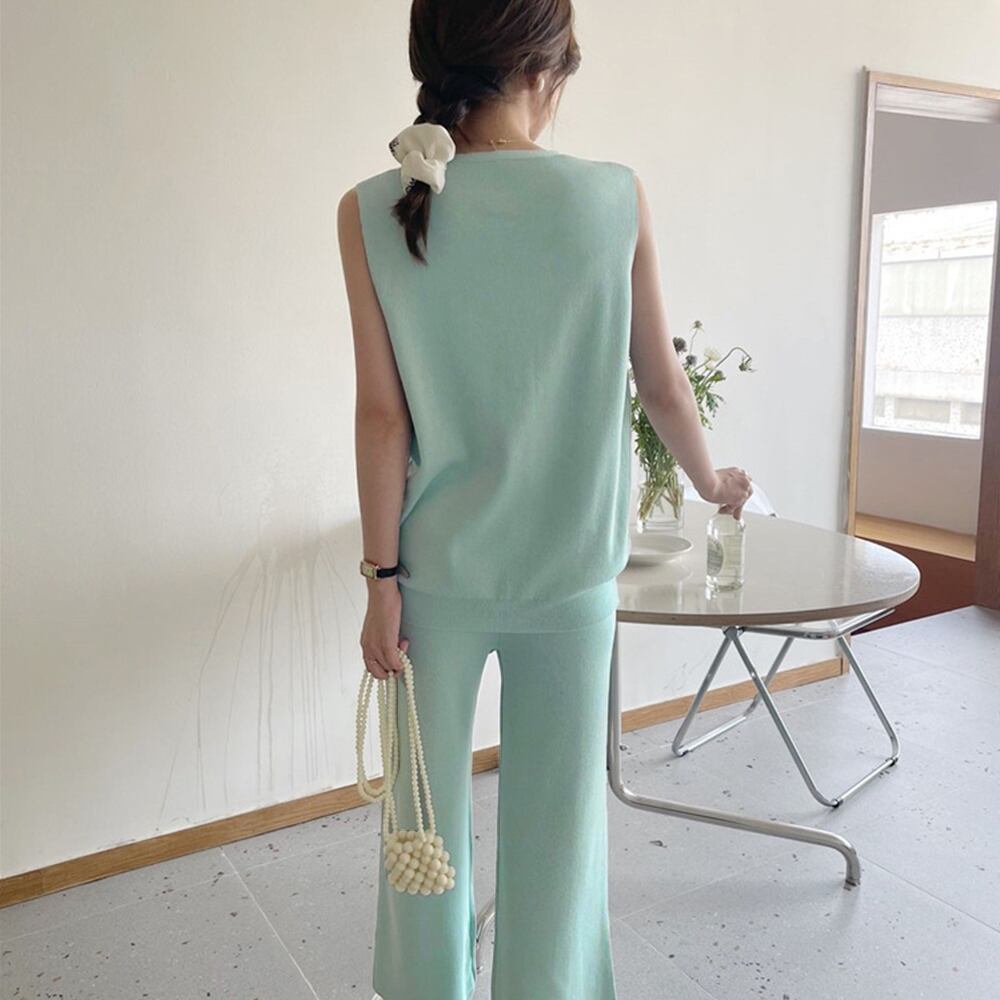 上下 セットアップ/韓国ファッション/無地 ニットパンツ