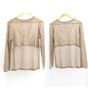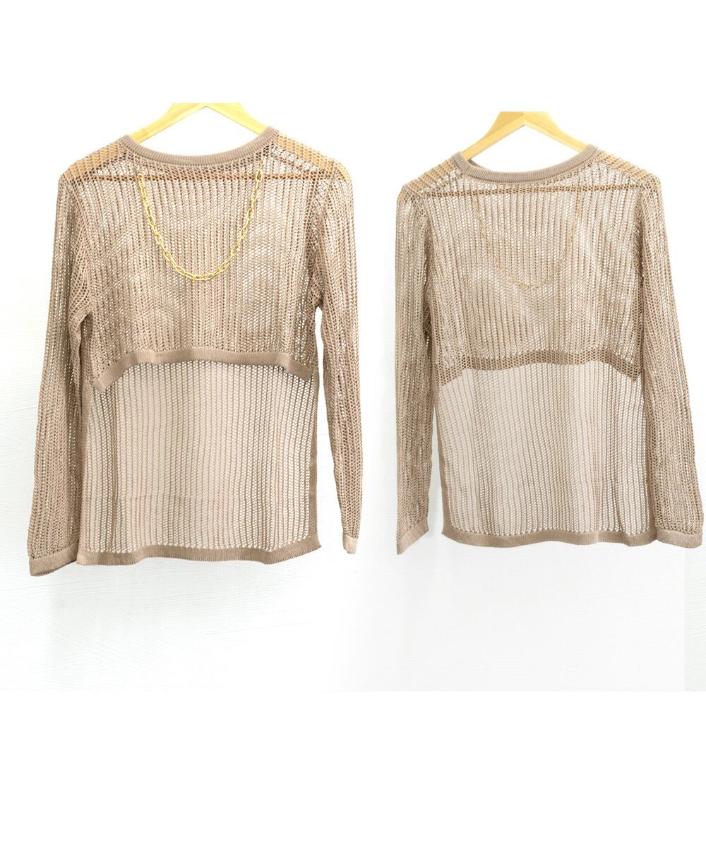 レディース 韓国風ファッション 春夏 無地 チェーン付き おしゃれ ブラウス シアーニット 長袖 カジュアルニットソー
