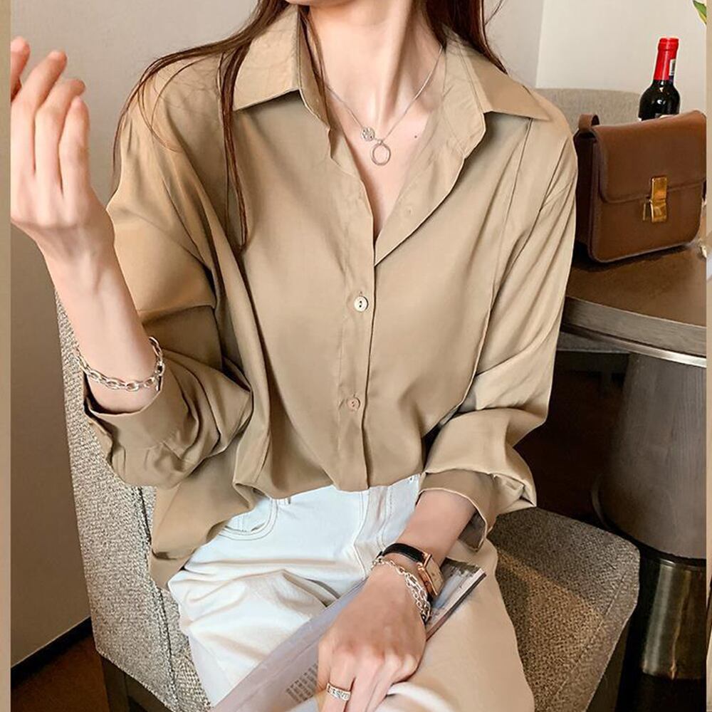 トップス オフィスカジュアル Vネックシャツ 春秋夏 長袖 体型カバー 着やせ 無地 ゆったりブラウス