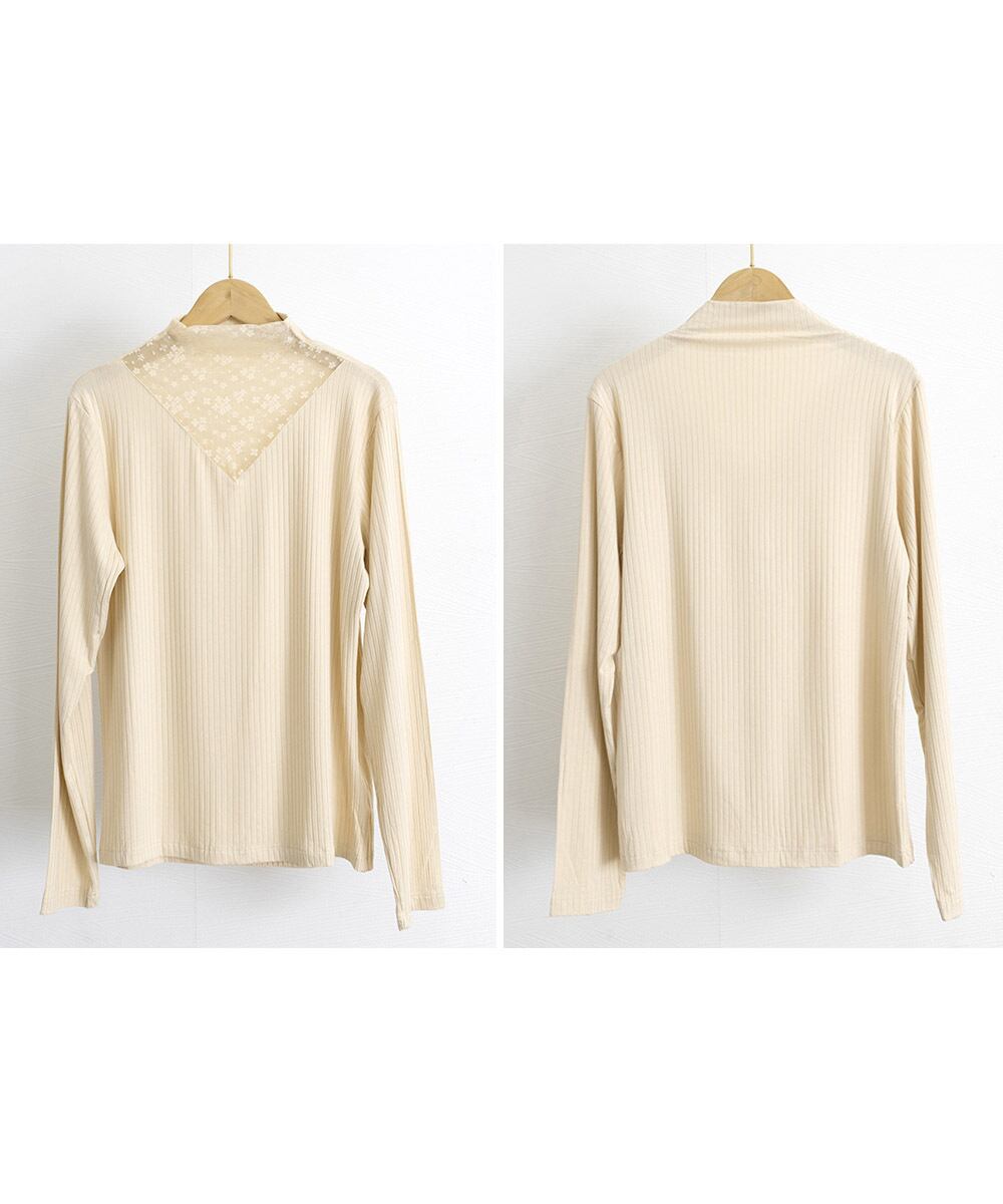 プルオーバーお洒落 きれいめ チラ見せ プチハイネック長袖