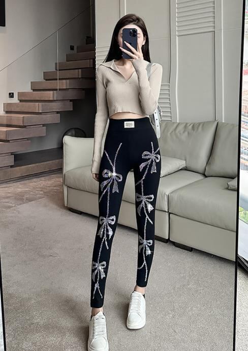 春秋新作 ボトムス 女 レディース ハイウエスト プリント スキニー レギンス 九分丈パンツ