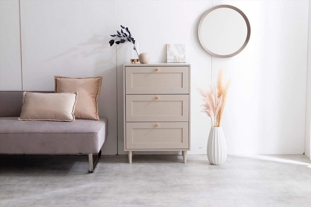 品のある框(かまち)デザインと柔らかなニュアンスカラーが印象的な『Calan(カラン)』シリーズのチェスト